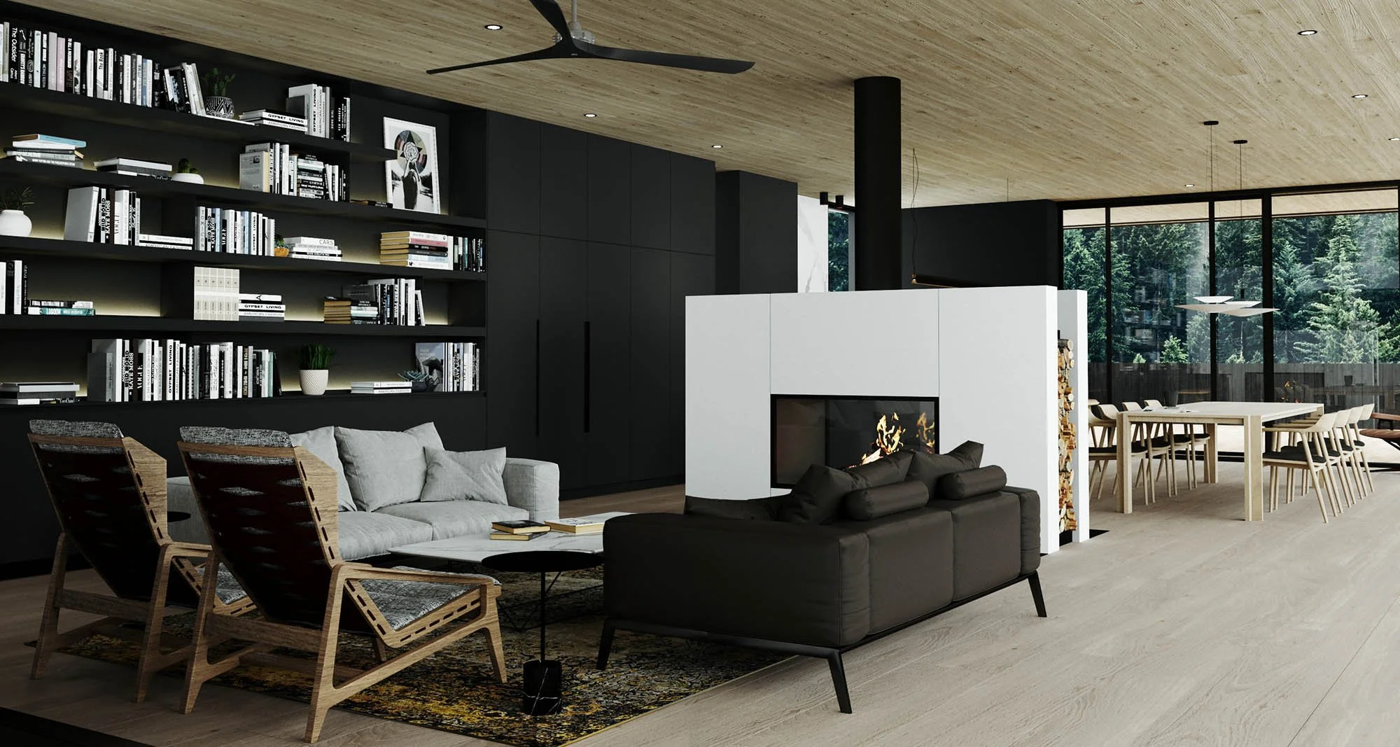 The owners of this luxury golf destination envisioned architecture that would support a spectacular golfing experience. The clubhouse establishes an architectural language and identity for the growing resort. A heavy masonry wall integrates with the landscape, emerging from the earth while creating a counterpoint to the timber frame structure. The butterfly roof design lifts dynamically upwards and outwards towards the vast scenic landscapes. Large window openings provide clear views, merging the transition at the threshold between interior and exterior. The clubhouse building houses multiple functions, including public amenities, such as a pro-shop, restaurant, exterior dining terrace, administrative office spaces, cart storage, and service facilities.