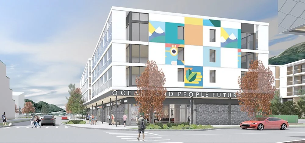 Residential One comprises two separate buildings that terrace down towards Spa'akw'us Feather Park. The south-facing terraces provide private and collective outdoor spaces with abundant sunlight and expansive views. Along the streets, gabion walls, consisting of metal cages filled with locally quarried stone, link the architecture to the landscape. The gabion walls reflect the wildness of the ocean and its rocky surroundings while referencing Squamish's industrial past. The ground floor comprises ample commercial space to animate the lively streetscape and provides opportunities for amenities for residents and visitors alike. A pedestrian arcade at the street level provides continuous weather protection and forms a breezeway between the two buildings, leading to a beautifully landscaped, peaceful, and wind-sheltered inner courtyard.