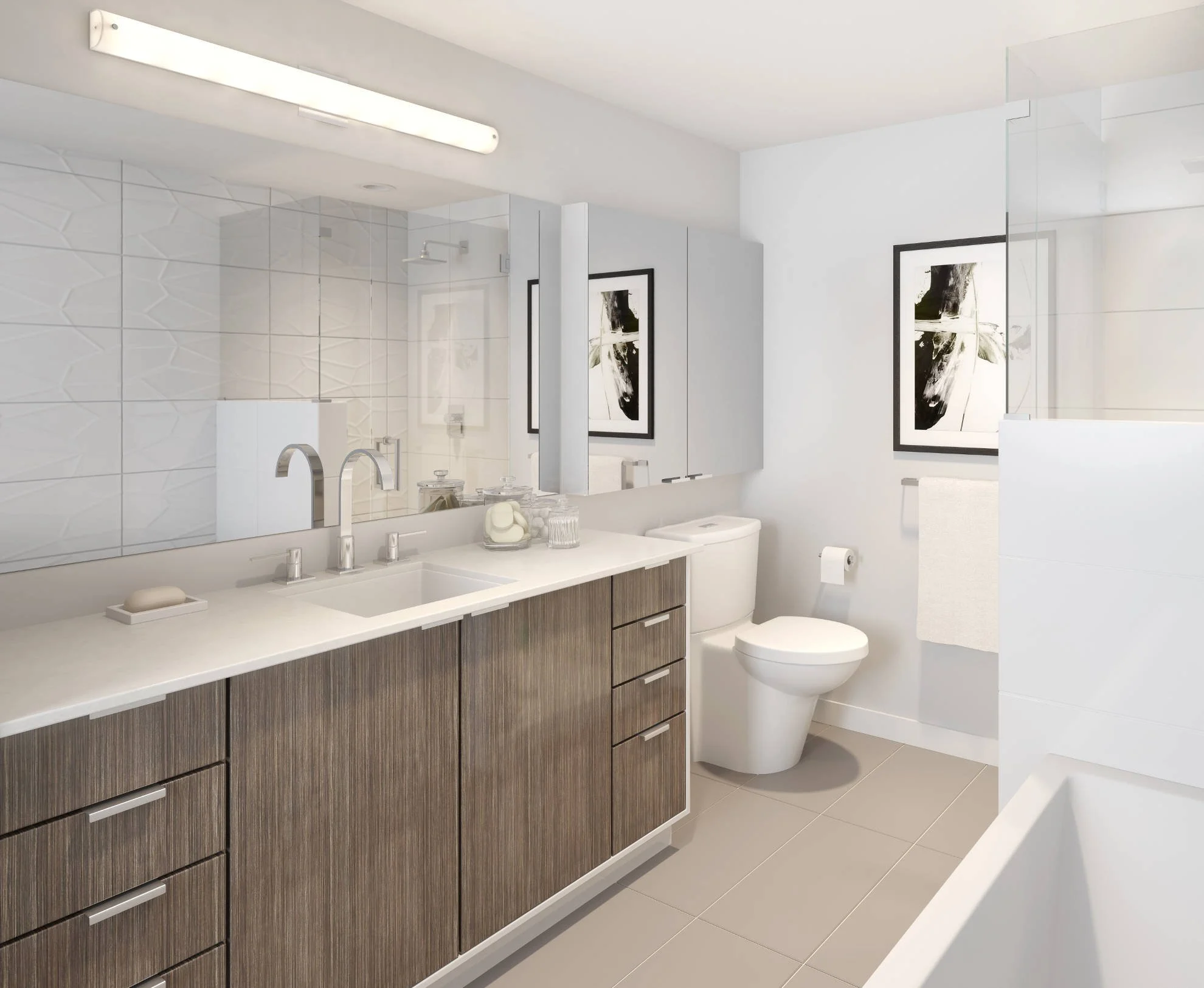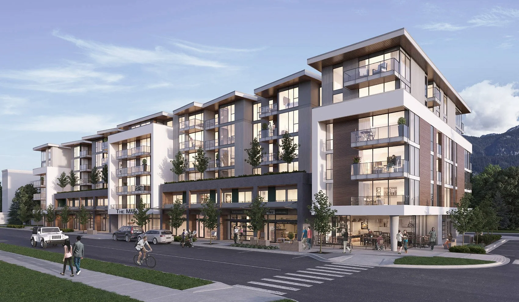 Five stories of residential construction include a combination of one-bedroom, two-bedroom and two-bedroom plus den suites. Each unit has its own balcony, while most units also include an interior storage room or “flex” space. The building exteriors are articulated as separate volumes in order to divide the length of the building into smaller masses and relate to the scale of a typical city block in downtown Squamish.